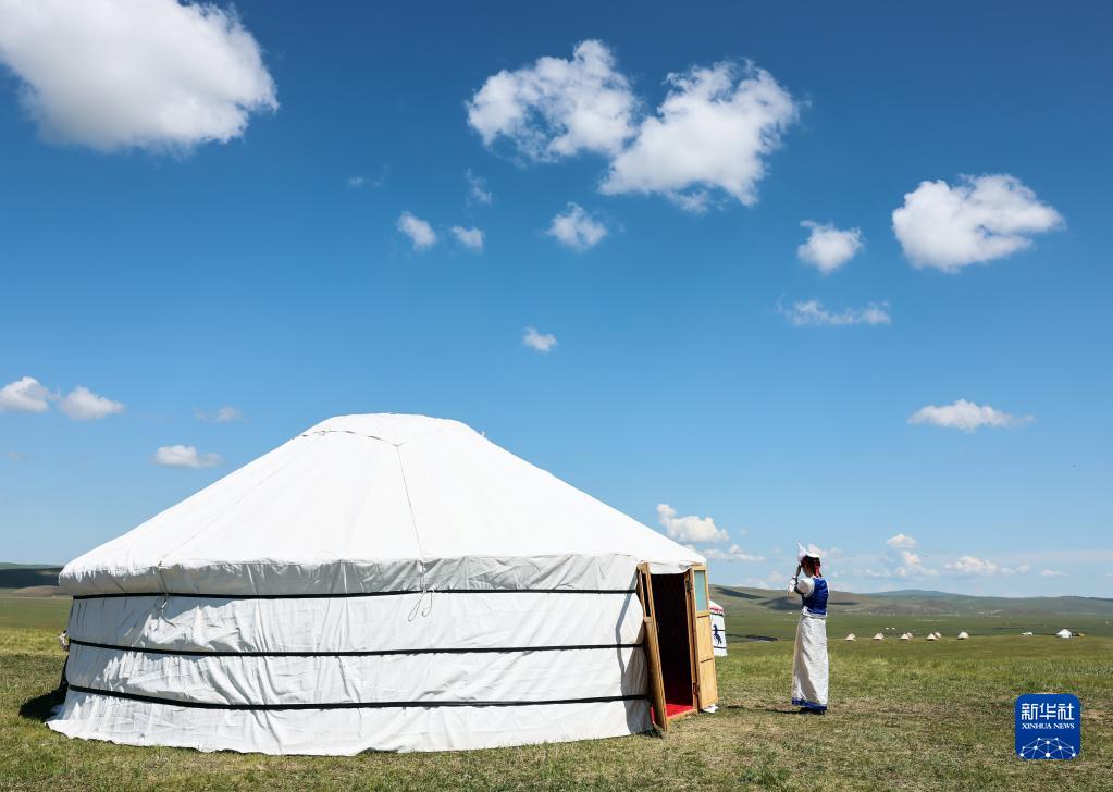7月1日,一名參加開(kāi)幕式的禮儀人員在蒙古包外。