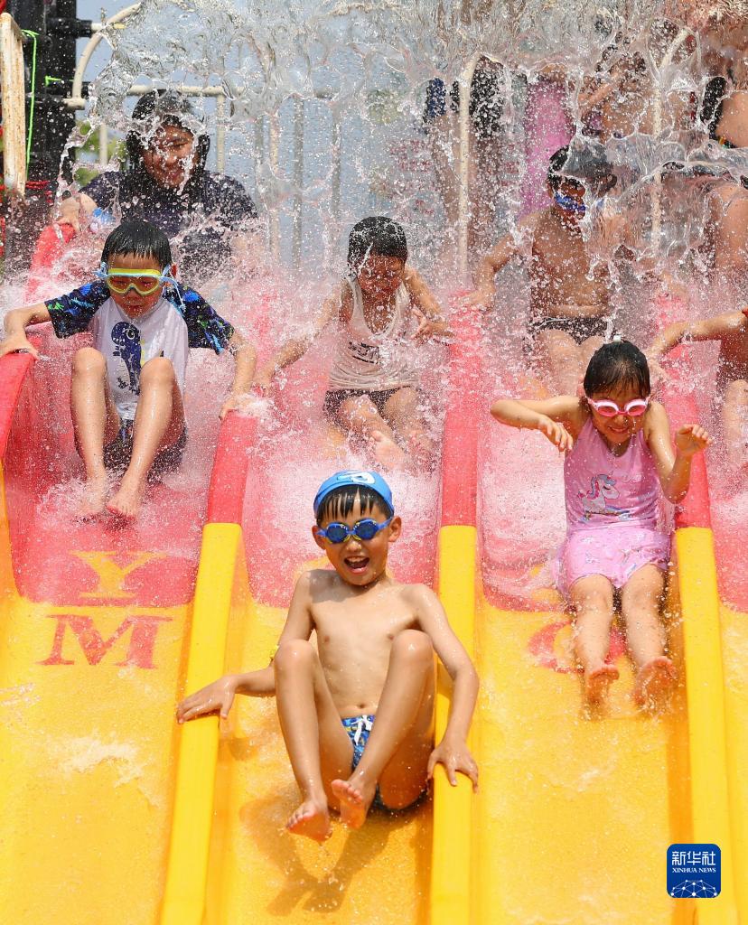 7月1日,孩子們在山東省滕州市東城水上樂(lè )園戲水。