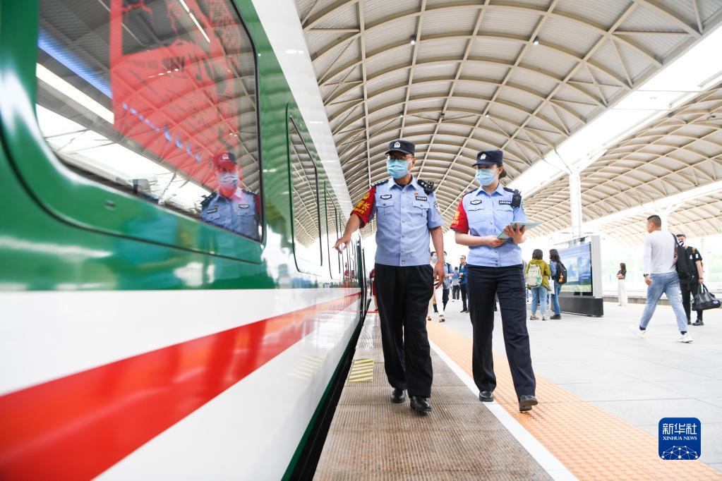 7月1日,C891次西寧至格爾木動(dòng)車(chē)組列車(chē)值乘民警在做出發(fā)前的檢查。