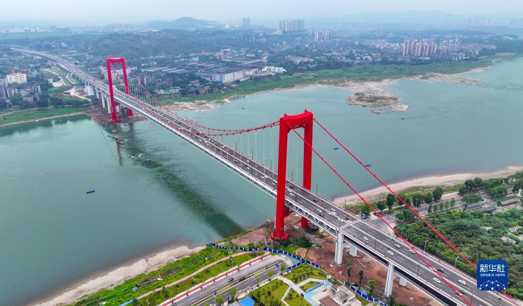 當日,四川瀘州長(cháng)江二橋建成通車(chē)。該橋長(cháng)1016米、主跨576米,是瀘州首座雙層公軌兩用懸索橋。新華社發(fā)(劉學(xué)懿攝)