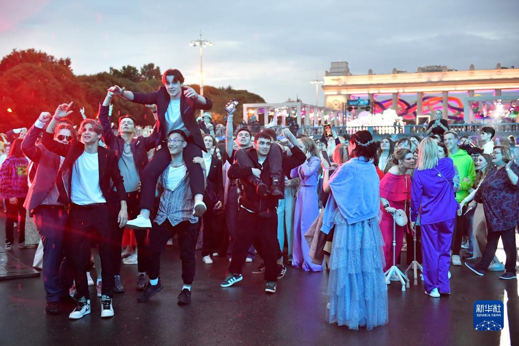 7月1日,在俄羅斯首都莫斯科,畢業(yè)生參加慶?;顒?dòng)。