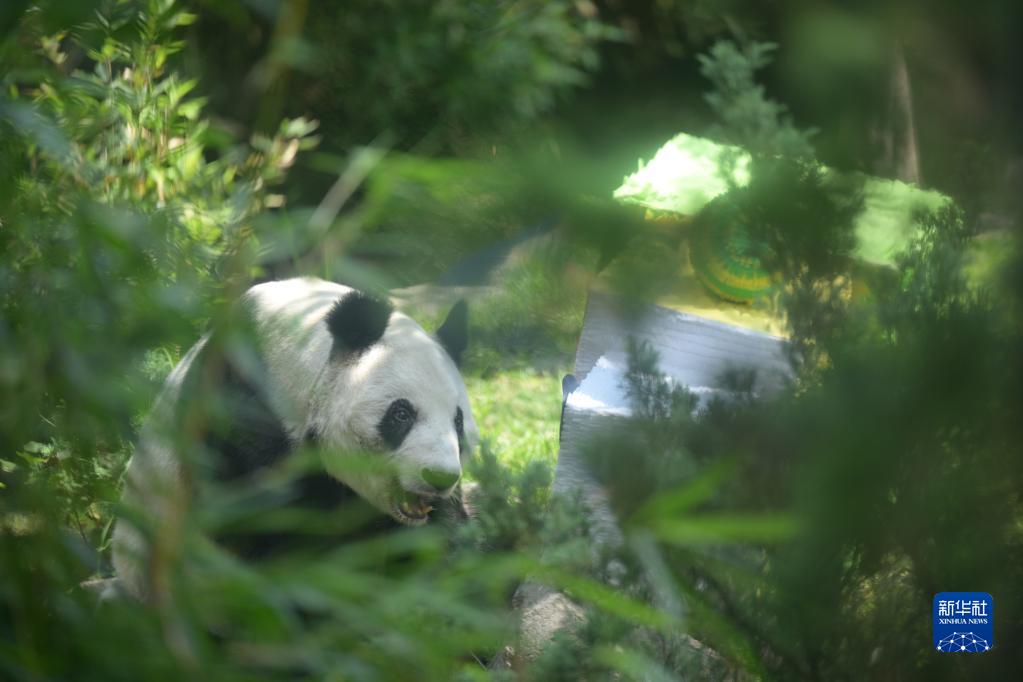 這是7月1日在墨西哥首都墨西哥城查普特佩克動(dòng)物園拍攝的大熊貓“欣欣”。