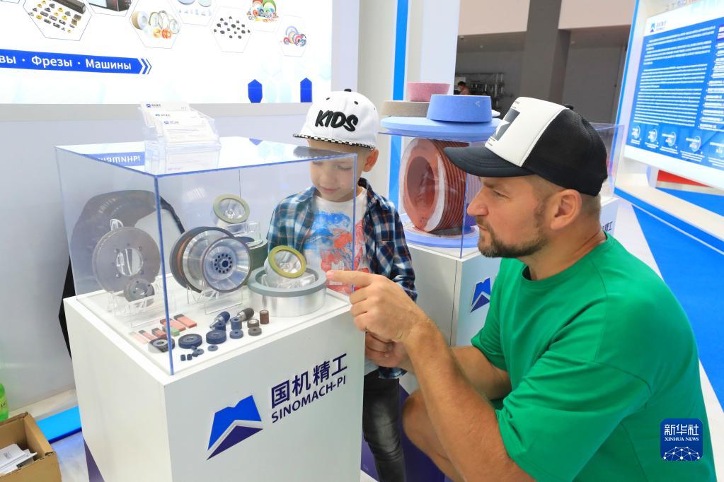 7月1日,在白俄羅斯明斯克中白工業(yè)園,參觀(guān)者在展覽會(huì )上觀(guān)看展品。