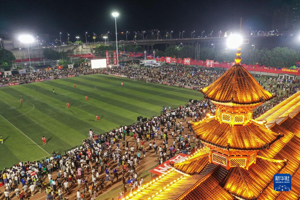 6月30日,人們在觀(guān)看貴州“村超”足球賽(無(wú)人機照片)。