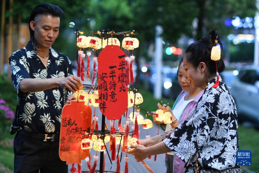 6月30日,村民在貴州“村超”足球賽場(chǎng)附近整理售賣(mài)的小燈籠。