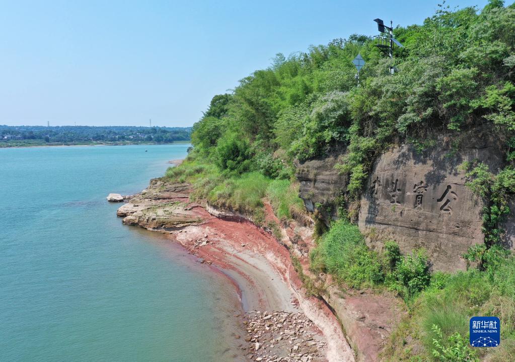 這是6月27日拍攝的神臂城周邊巖壁上的題刻(無(wú)人機照片)?!肮珜?shí)生我”摩崖題刻,夏天漲水的時(shí)候,字被洪水淹沒(méi),退水的時(shí)候,字又露出來(lái),至今保存比較完好。