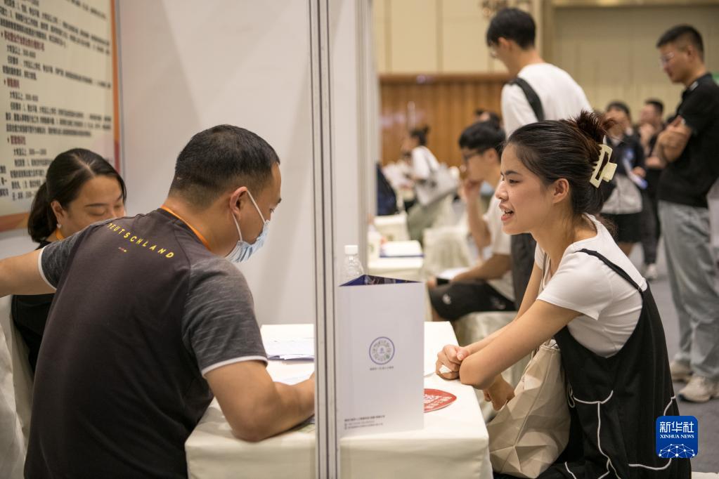 7月2日,在成都世紀城新國際會(huì )展中心1號館,求職者在面試。