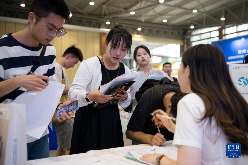 7月2日,在成都世紀城新國際會(huì )展中心1號館,求職者在投遞簡(jiǎn)歷。