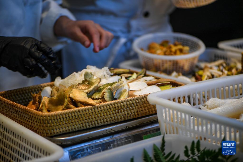 7月2日,昆明一家飯店的工作人員整理準備烹飪的野生菌。