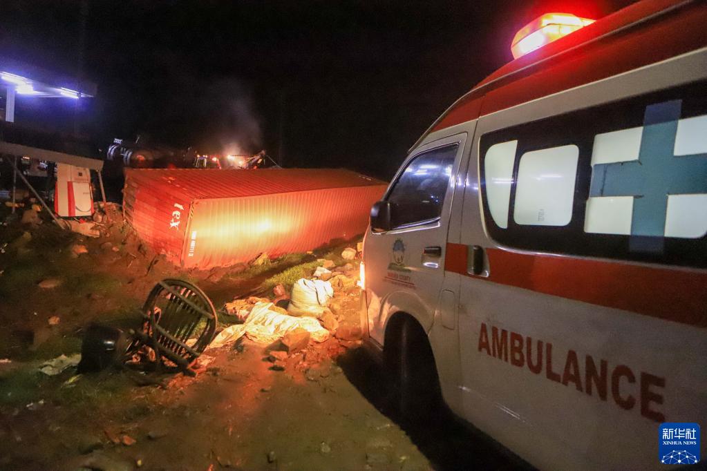 6月30日,救護車(chē)抵達肯尼亞西北部凱里喬郡隆迪亞尼鎮附近的車(chē)禍現場(chǎng)。