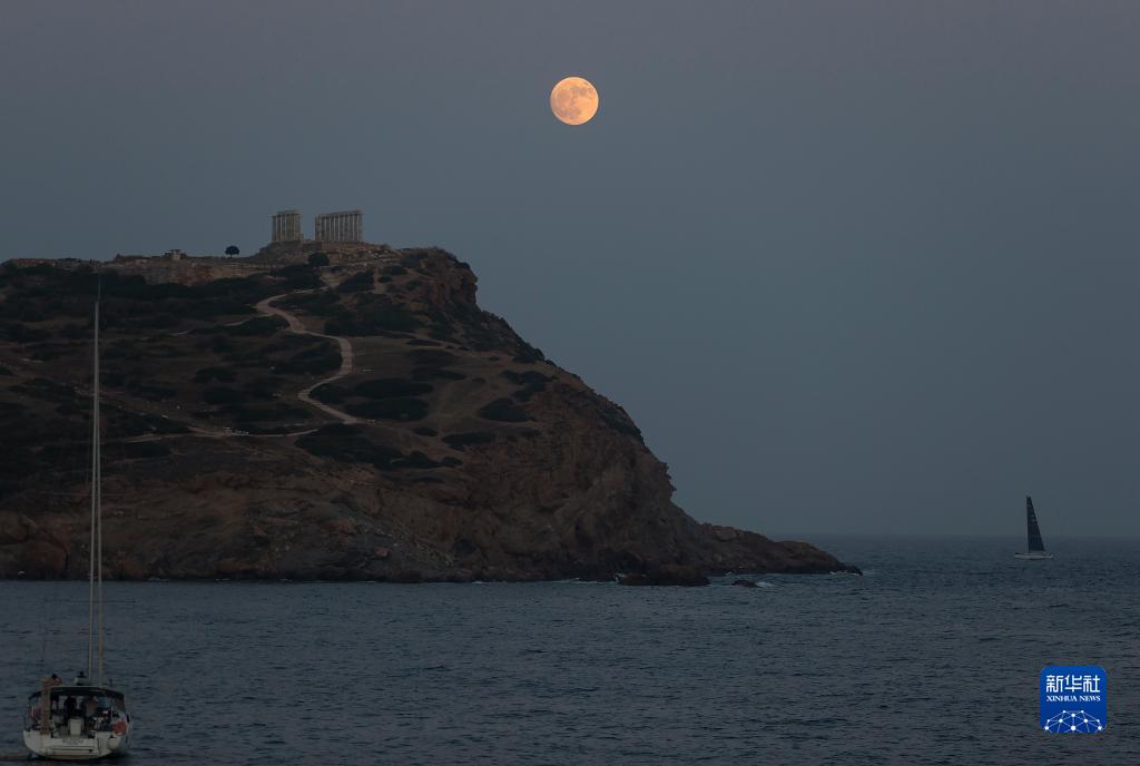 7月2日,一輪滿(mǎn)月出現在希臘蘇尼翁的海神廟遺址上空。