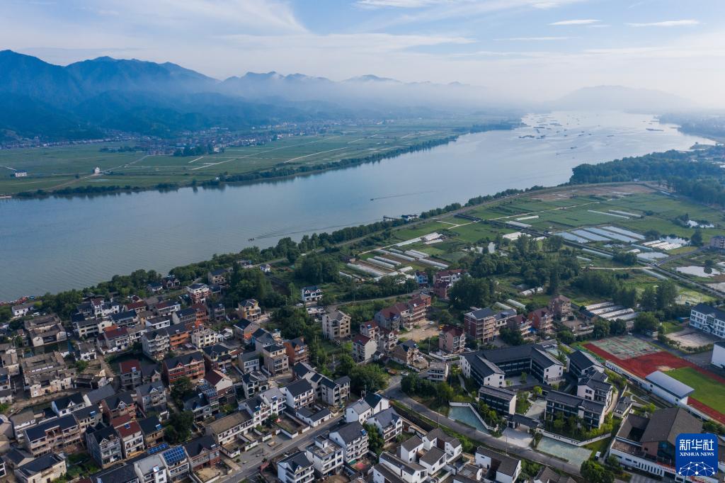 7月3日,空中俯瞰富春江畔的東梓關(guān)村(無(wú)人機照片)。