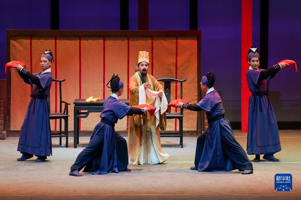 演員在黃梅戲《第一山》中表演(7月2日攝)。