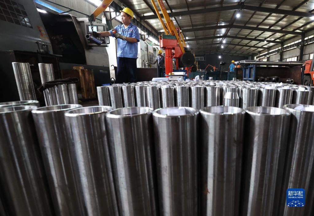 7月3日,工人在河北省晉州市營(yíng)里鎮一家石油鉆具企業(yè)生產(chǎn)車(chē)間工作。