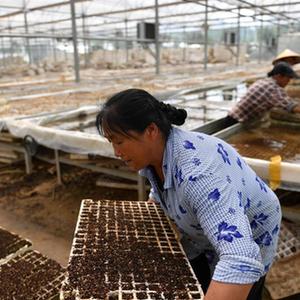 7月3日,在湖南湘西州保靖縣陽(yáng)朝鄉溪洲村一處農業(yè)基地,農民在打理蔬菜苗。