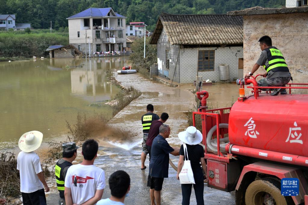 7月3日,在保靖縣陽(yáng)朝鄉猛科村,當地應急民兵協(xié)助村民清理淤泥。