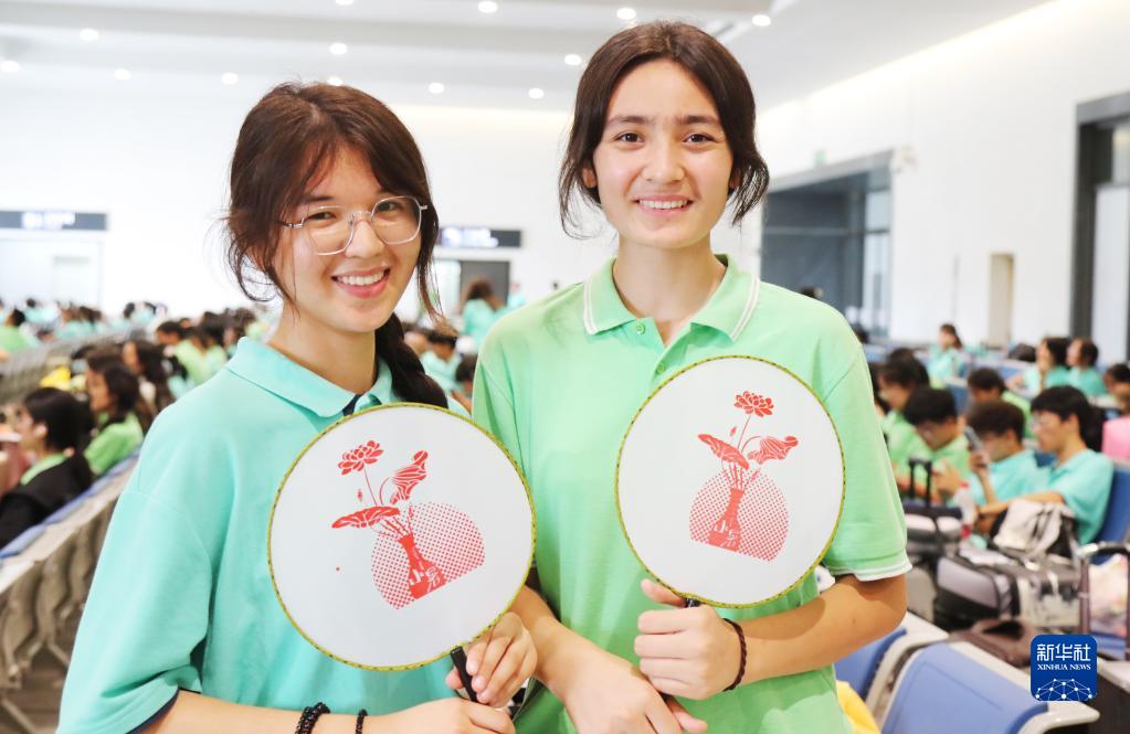 7月3日,“內高班”學(xué)生在蘇州火車(chē)站展示候車(chē)時(shí)制作的團扇。