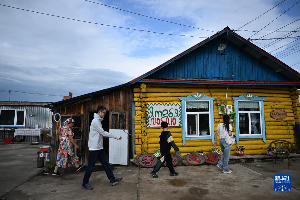 6月28日,游客們在考占花家參觀(guān)俄式傳統民居。