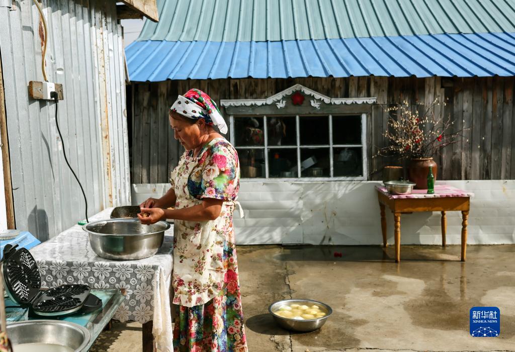 6月28日,考占花在制作肉餅。