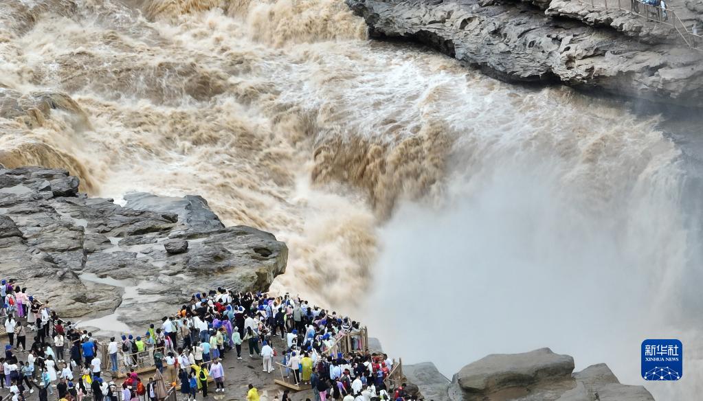暑期,眾多游客來(lái)到位于陜西宜川縣和山西吉縣交界處的黃河壺口瀑布游覽,領(lǐng)略壺口瀑布美景。