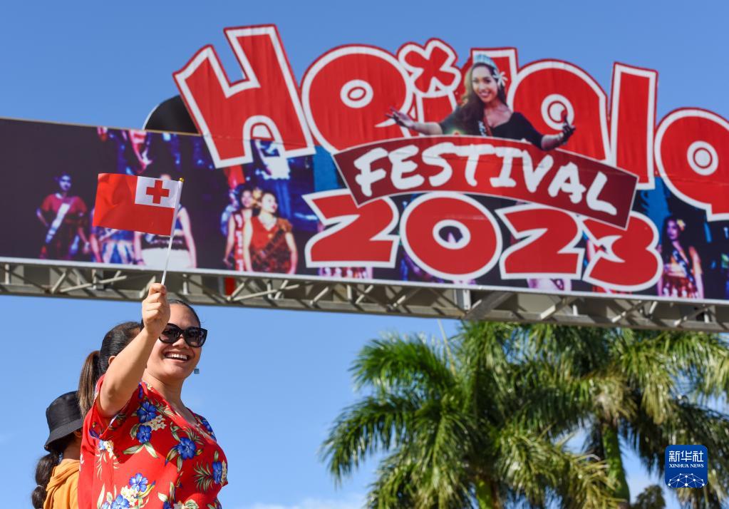 7月4日,人們在湯加首都努庫阿洛法觀(guān)看花車(chē)游行。