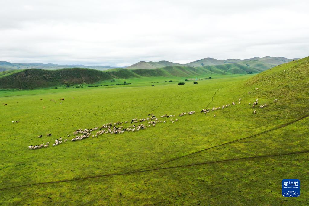 7月5日拍攝的烏蘭毛都草原夏日風(fēng)光(無(wú)人機照片)。