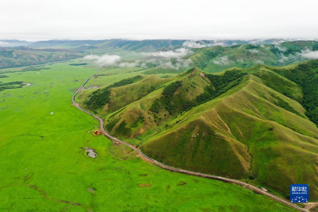7月5日拍攝的烏蘭毛都草原夏日風(fēng)光(無(wú)人機照片)。