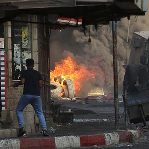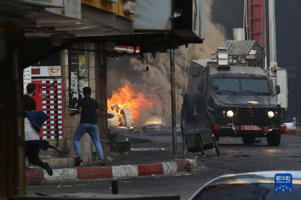 7月4日,在約旦河西岸杰寧地區,巴勒斯坦抗議者同以色列軍隊發(fā)生沖突。