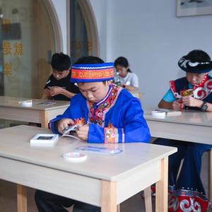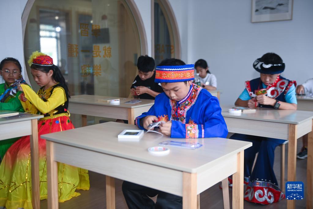 7月5日,在東林鎮星火村的“春泥計劃”暑期課堂,少數民族孩子在參加剪紙活動(dòng)。