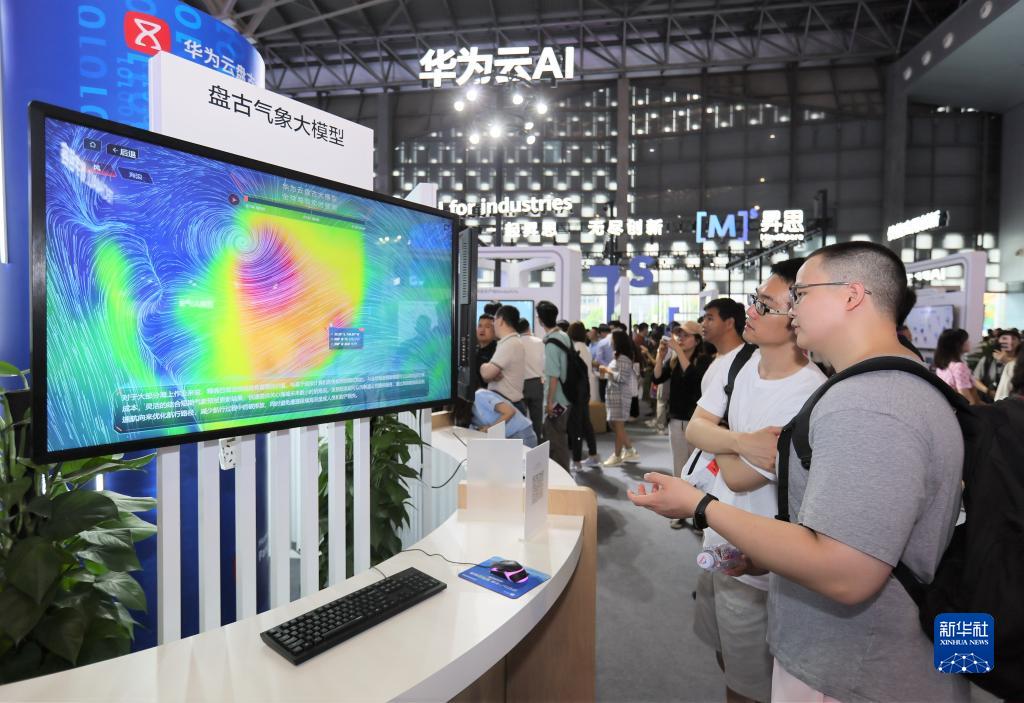 7月6日,人們觀(guān)看華為云盤(pán)古氣象大模型。