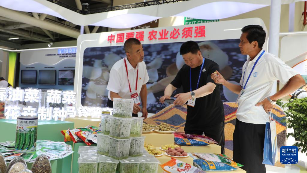 7月6日,在第二十九屆中國蘭州投資貿易洽談會(huì )現代農業(yè)館,參會(huì )者在了解展品情況。
