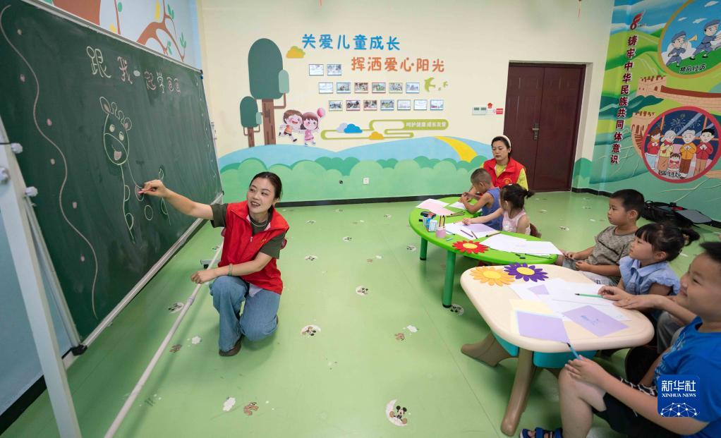 7月6日,在黃驊市海濱學(xué)院社區“多彩暑期·向陽(yáng)花開(kāi)”公益課堂,志愿者教孩子們畫(huà)畫(huà)。