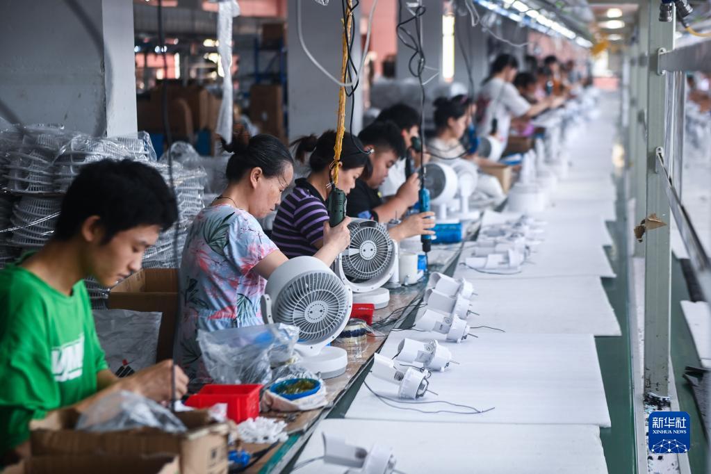 7月6日,工人在位于慈溪市的寧波榮電電器制造有限公司生產(chǎn)電風(fēng)扇。
