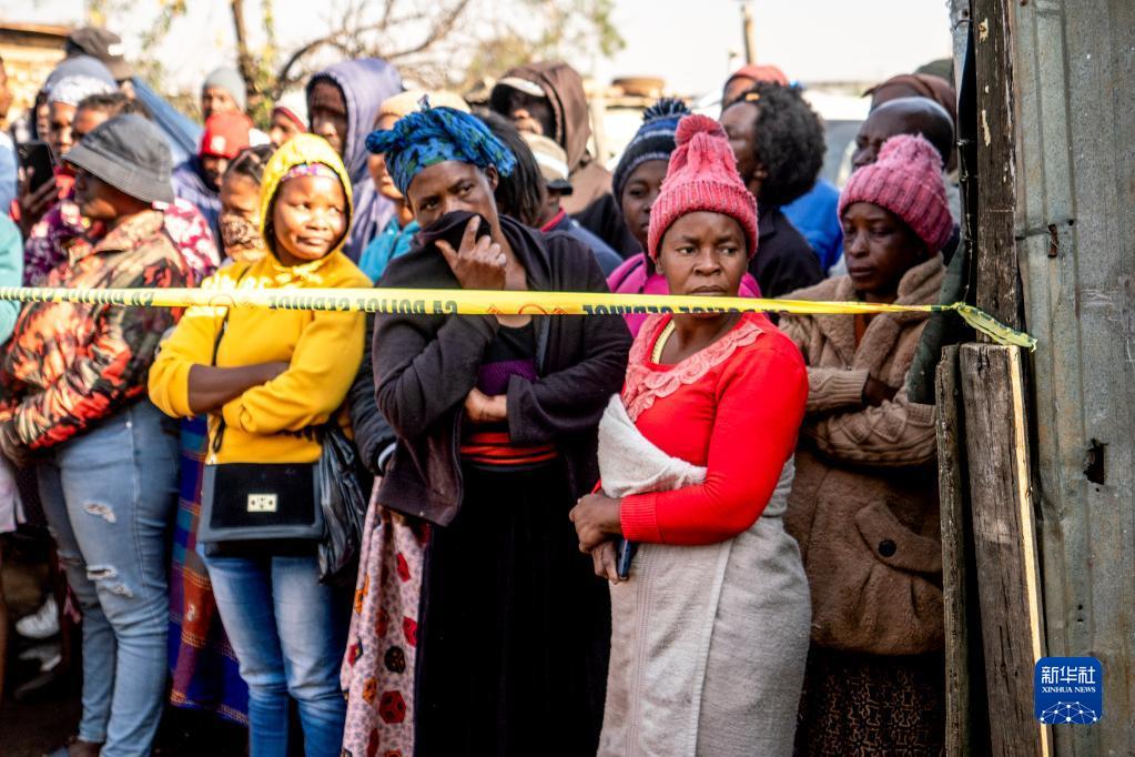 7月6日,人們在南非豪滕省埃庫爾胡萊尼市的事發(fā)現場(chǎng)附近圍觀(guān)。