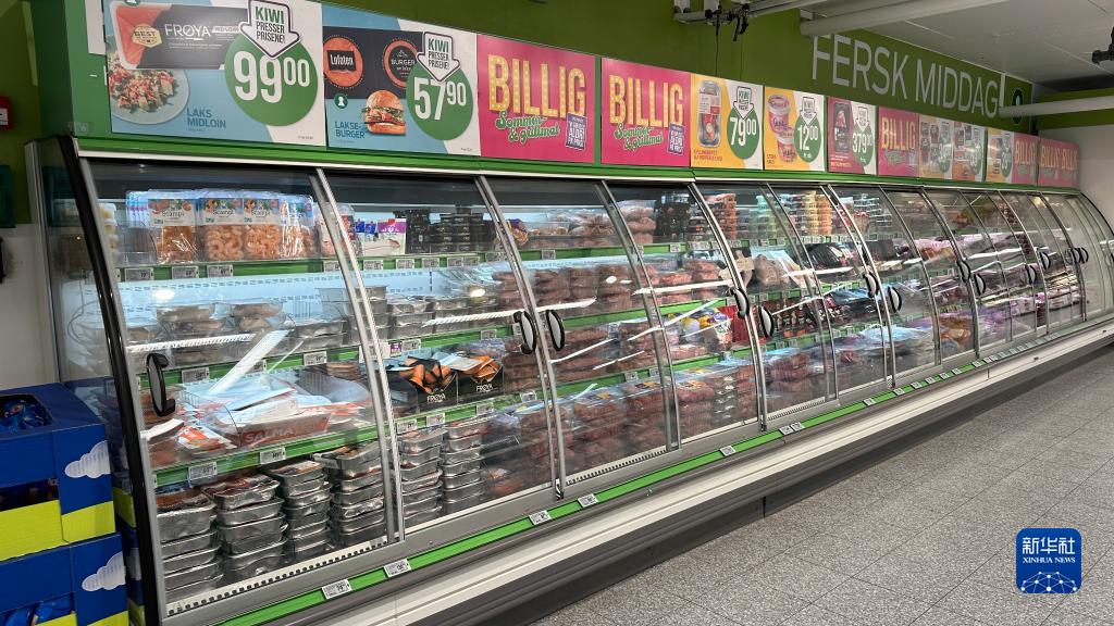 這是7月5日在挪威首都奧斯陸一家超市拍攝的三文魚(yú)等海產(chǎn)品。