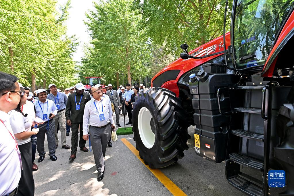 7月6日,駐華使節在國機集團中國農機院參觀(guān)“東方紅”拖拉機。