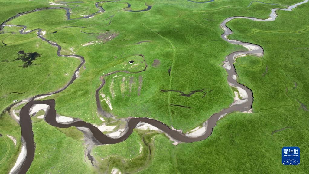 這是瑪曲縣阿萬(wàn)倉濕地景色(7月6日攝,無(wú)人機照片)。