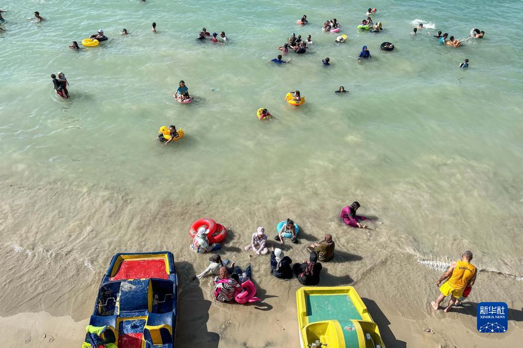 7月6日,人們在埃及亞歷山大的海邊游玩消暑。