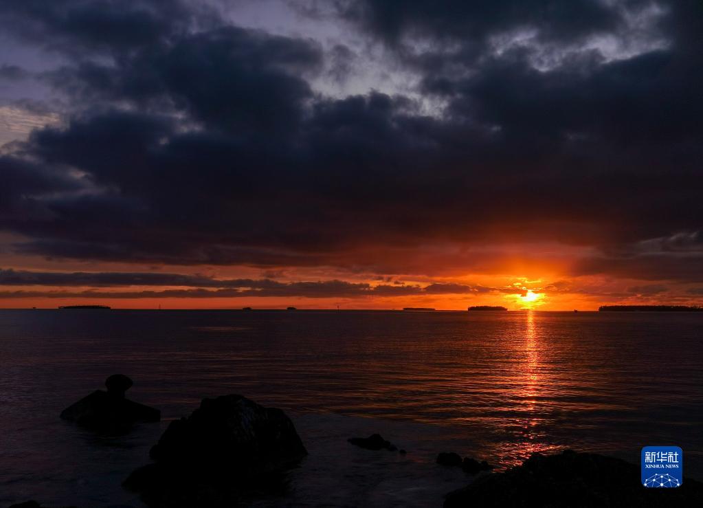 這是7月5日在湯加首都努庫阿洛法拍攝的朝霞。