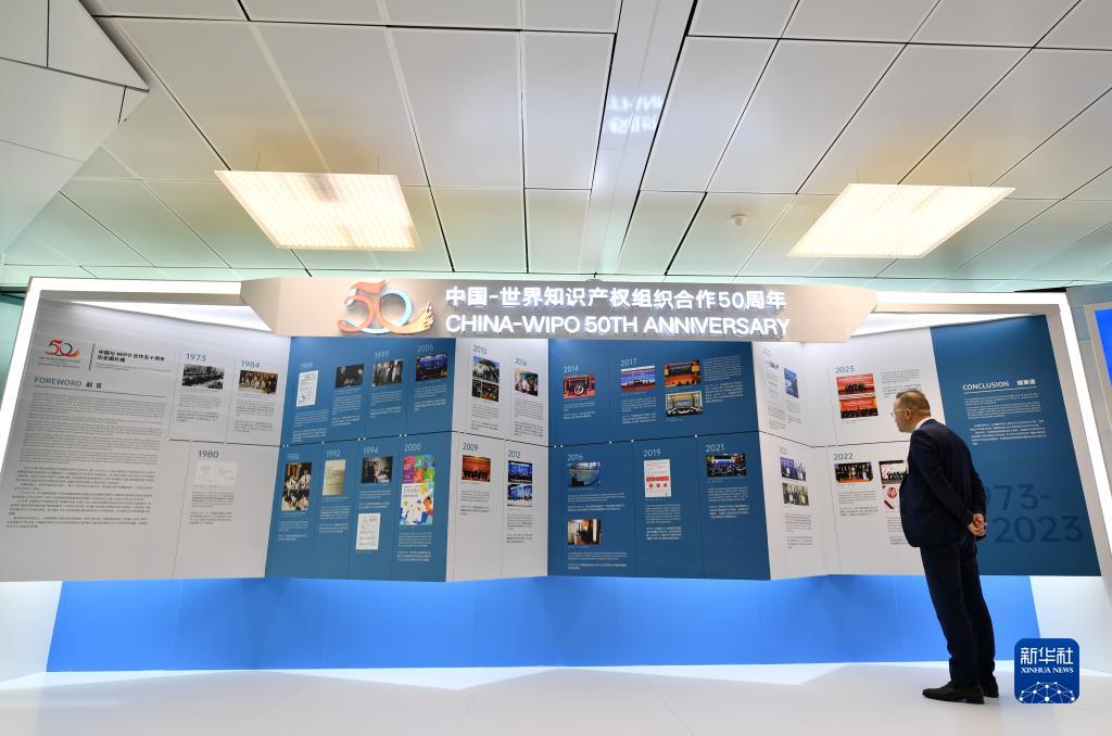 7月6日,在瑞士日內瓦,與會(huì )者在中國與世界知識產(chǎn)權組織合作五十周年系列活動(dòng)——世界知識產(chǎn)權組織主場(chǎng)活動(dòng)上參觀(guān)中國與世界知識產(chǎn)權組織合作五十周年歷史圖片展。