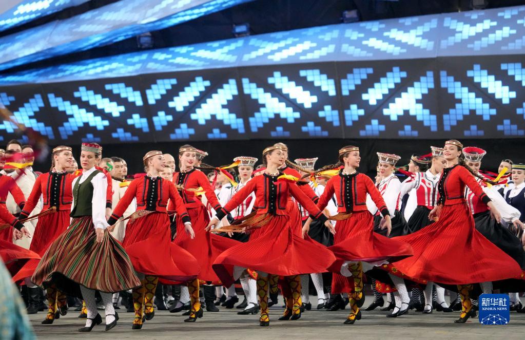當天,拉脫維亞第27屆歌曲節和第17屆舞蹈節的重頭戲大型團體舞蹈表演在里加道加瓦體育場(chǎng)舉行。