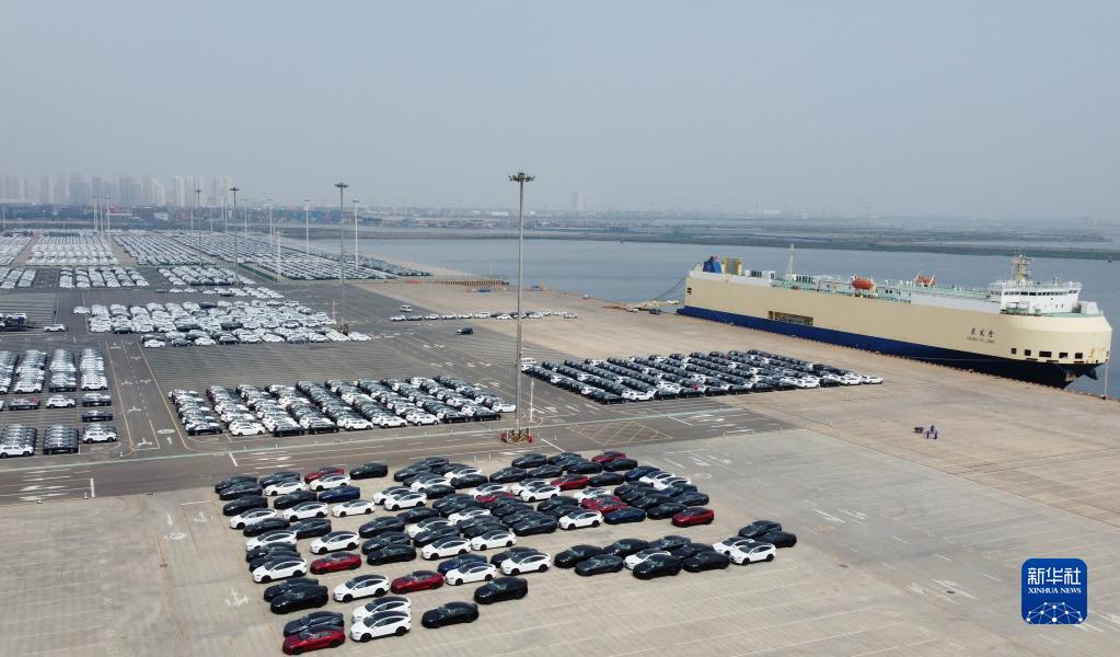 7月7日,一艘滾裝船??吭谔旖蚋郗h(huán)球滾裝碼頭(無(wú)人機照片)。