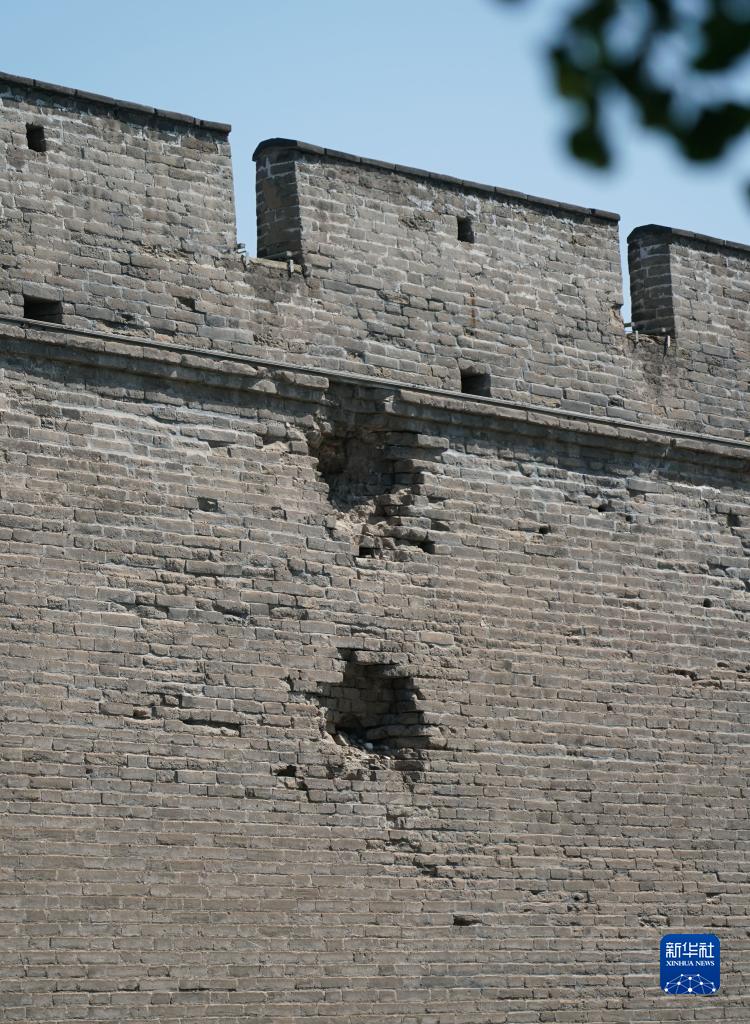 這是7月6日拍攝的宛平城城墻上的“七七事變”彈坑遺址。