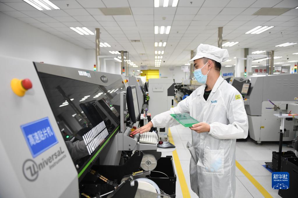 7月7日,工人在南瑞集團有限公司智能制造生產(chǎn)區作業(yè)。