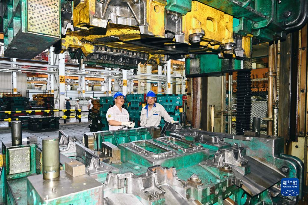 馮斌(左)檢查沖壓機床工作狀態(tài)(6月8日攝)。馮斌是中國第一汽車(chē)集團有限公司旗下一汽解放汽車(chē)有限公司卡車(chē)廠(chǎng)的模具鉗工。擁有20余年沖壓生產(chǎn)工作經(jīng)歷的他先后獲得企業(yè)、市級、省級“勞動(dòng)模范”稱(chēng)號與全國五一勞動(dòng)獎?wù)隆?/p>