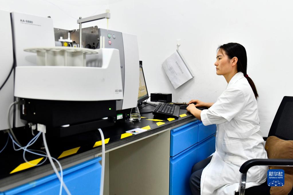 7月7日,在北京葆年堂(菏澤)藥業(yè)有限公司,工作人員對中藥材進(jìn)行農殘和重金屬檢測。