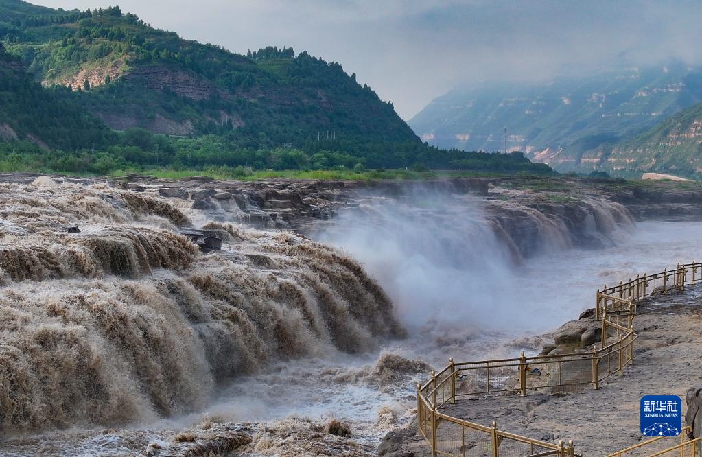 7月7日拍攝的黃河壺口瀑布(無(wú)人機照片)。