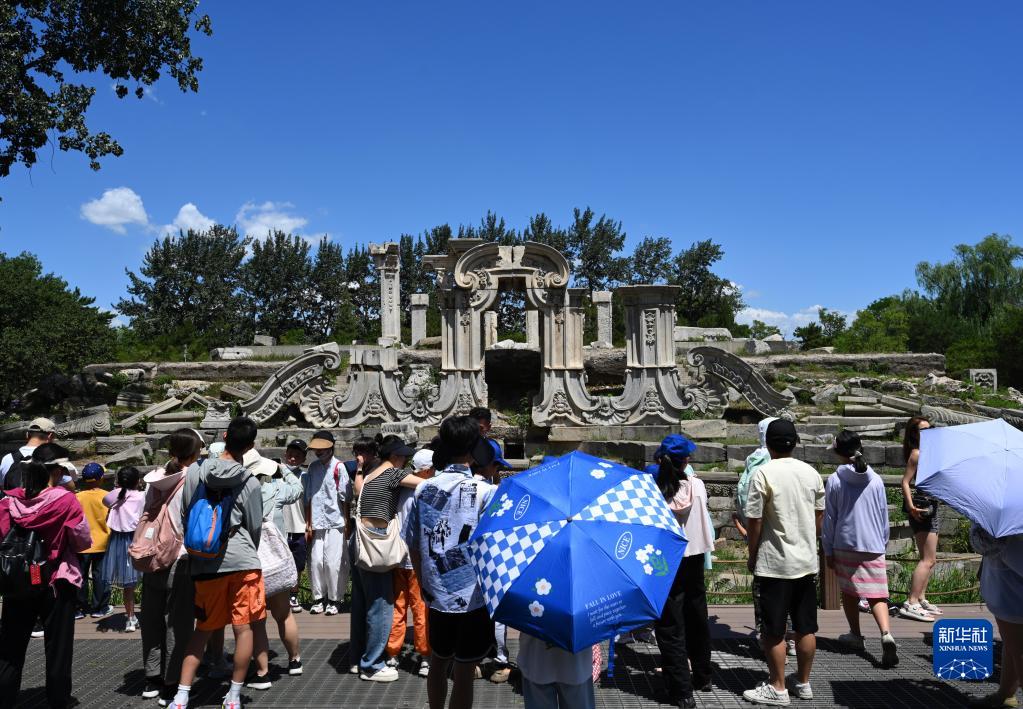 7月8日,游客在圓明園大水法遺址參觀(guān)。