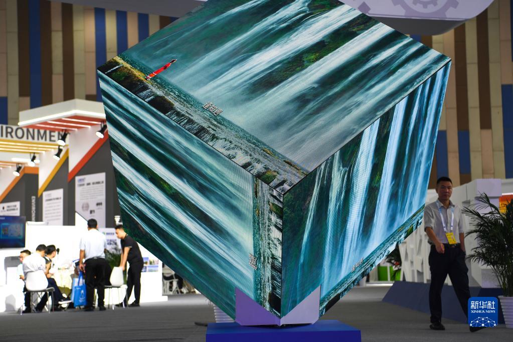 這是2023年生態(tài)文明貴陽(yáng)國際論壇會(huì )場(chǎng)內的宣傳屏(7月8日攝)。