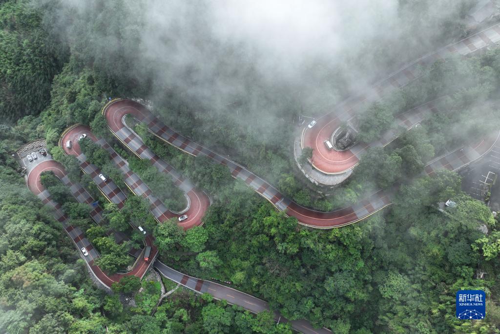 7月8日拍攝的矮寨盤(pán)山公路(無(wú)人機照片)。